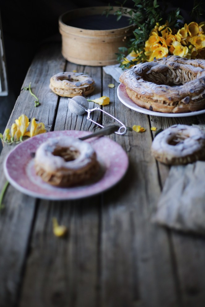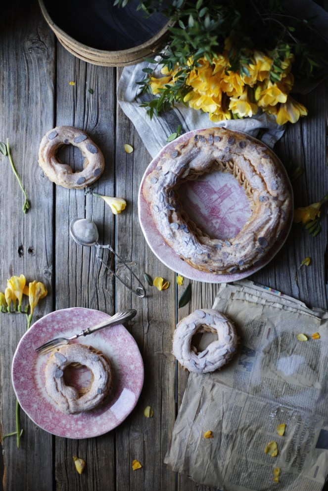 p.s.:”Potete farcirlo come più vi piace, magari con della crema chantilly e fragole, con della mousse al mascarpone oppure per conquistare proprio tutti, una mousse al cioccolato. Piccolo consiglio, il pralinato compratelo, io ho voluto tentare nel farlo a casa, ma è parecchio difficile se non si è un mixer appropriato.” Buon Paris-Brest! ❤